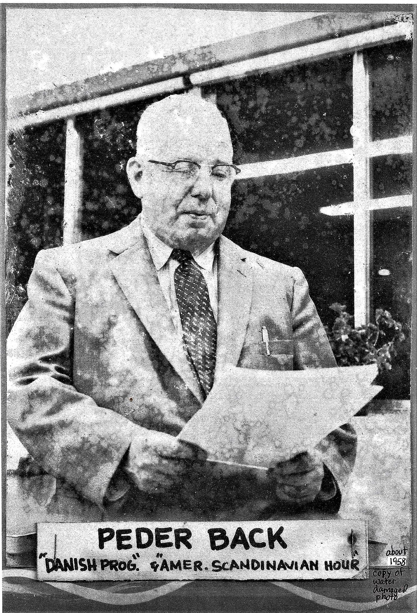 Racine Journal Times, Dec 17, 1968WRJN transmitter room from the 1990s. From Janet Hoff Karkow. Harris MW 1A closest to viewer.From Janet Hoff Karkow: WRJN microphone flag.WRJN’s Peder Back who presented the Danish Program and the American Scandinavian Hour, around 1958. This photo is from Janet Hoff Karkow.Jim Bradley (in the AMC shirt) and Frenchy Boutan. This photo is from Janet Hoff Karkow.